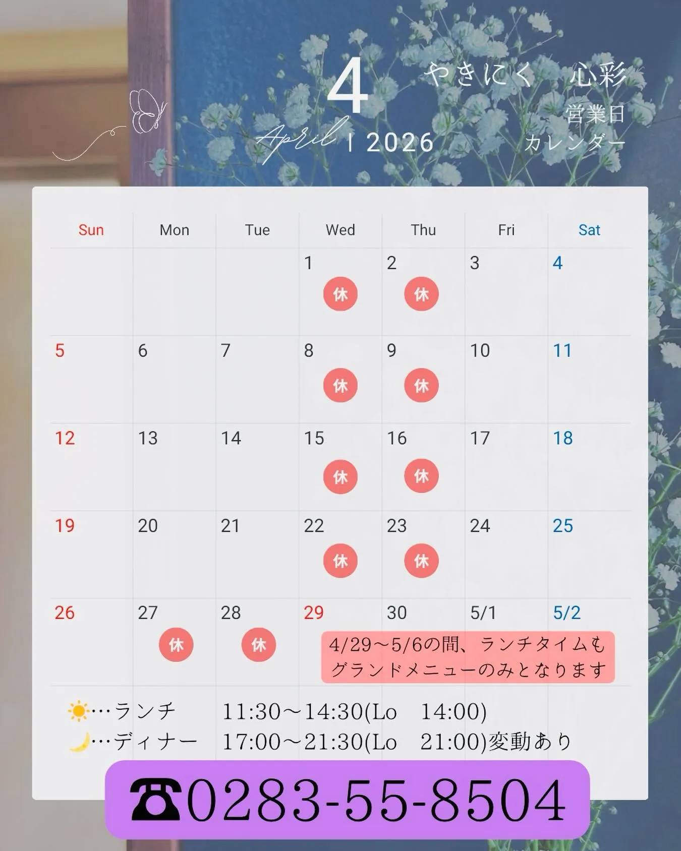 4月営業日のお知らせでございます📢✨